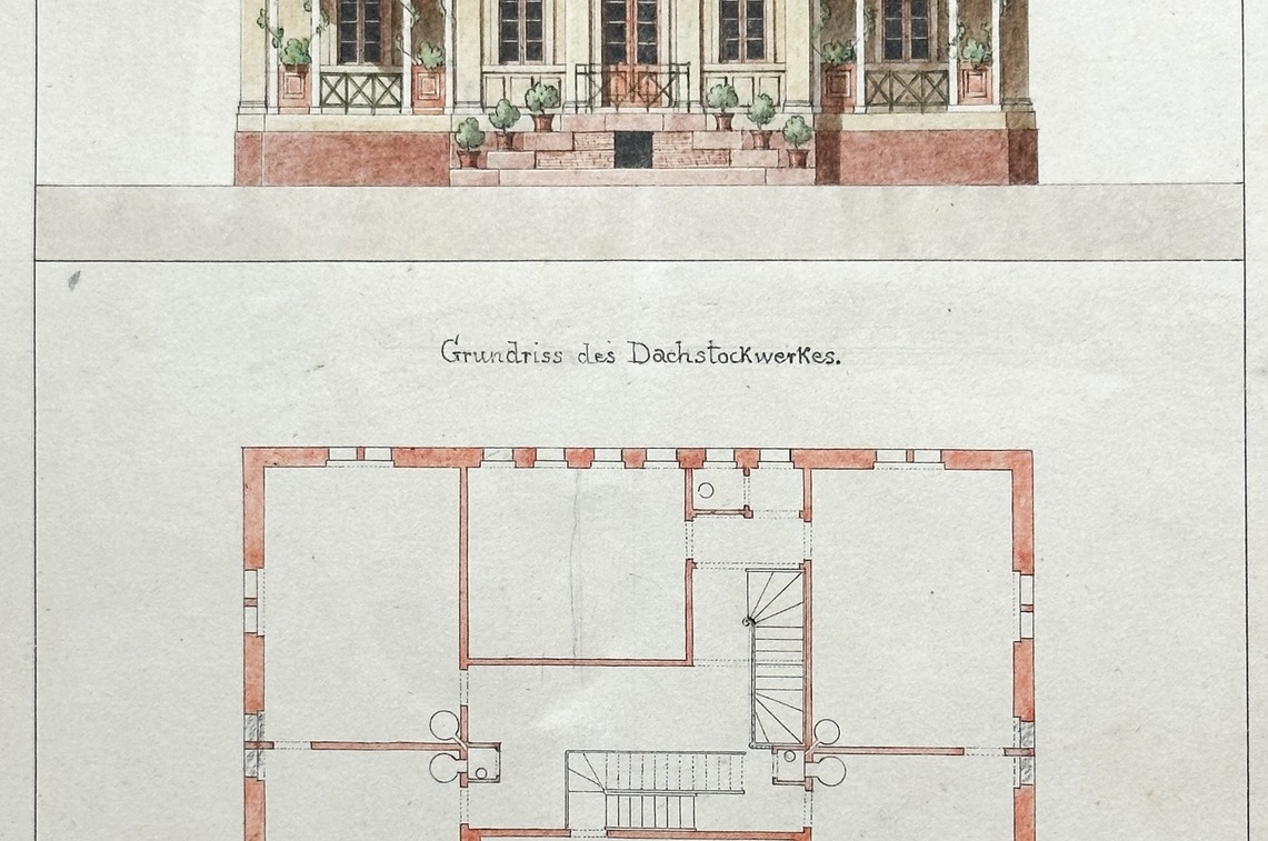 Schloss Fachsenfeld VII – Stuttgart, Landhaus Rebenberg III: der Bauantrag von Ludwig Zanth, Aufriss der Hauptfassade und Grundriss des Dachgeschosses, Tusche, koloriert, 31,5 x 20,4 cm, u. l. bez. Dr. Zanth, Architekt. Stuttgart, 19ten Februar 1838, Stadtarchiv Aalen, Stiftung Schloss Fachsenfeld, N KOE 625, Bl. 4 Das für Elisabeth von Koenig errichtete Landhaus zwischen Stuttgart und Schloss Rosenstein ist ein Schlüsselwerk … weiterlesen