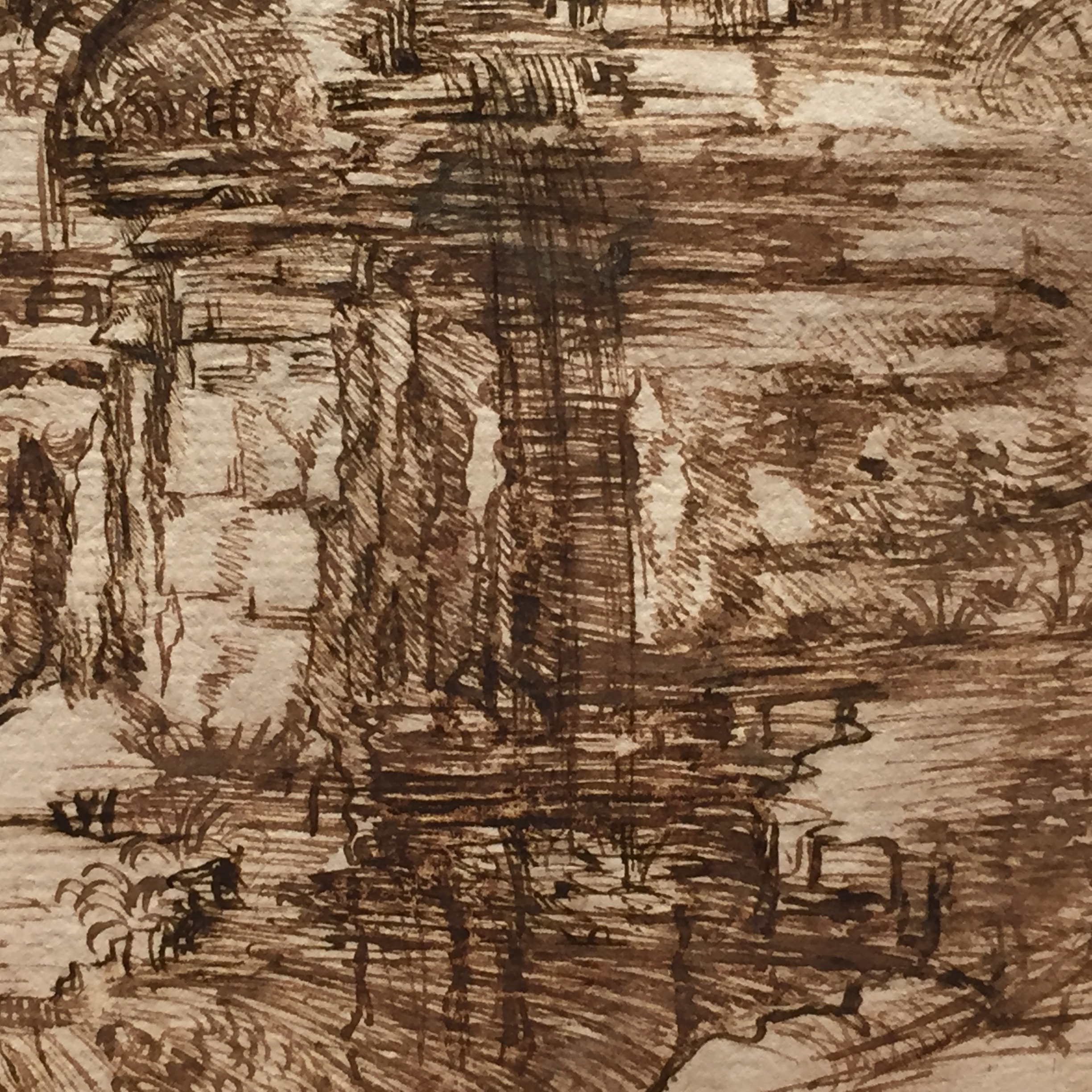 Leonardo, Landschaft mit Fluss, 1473, Feder in Braun, 19,7 x 28,6 cm, Uffizien, Gabinetto dei Disegni, Inv. Nr. 8 P – aufgenommen im Juni 2016