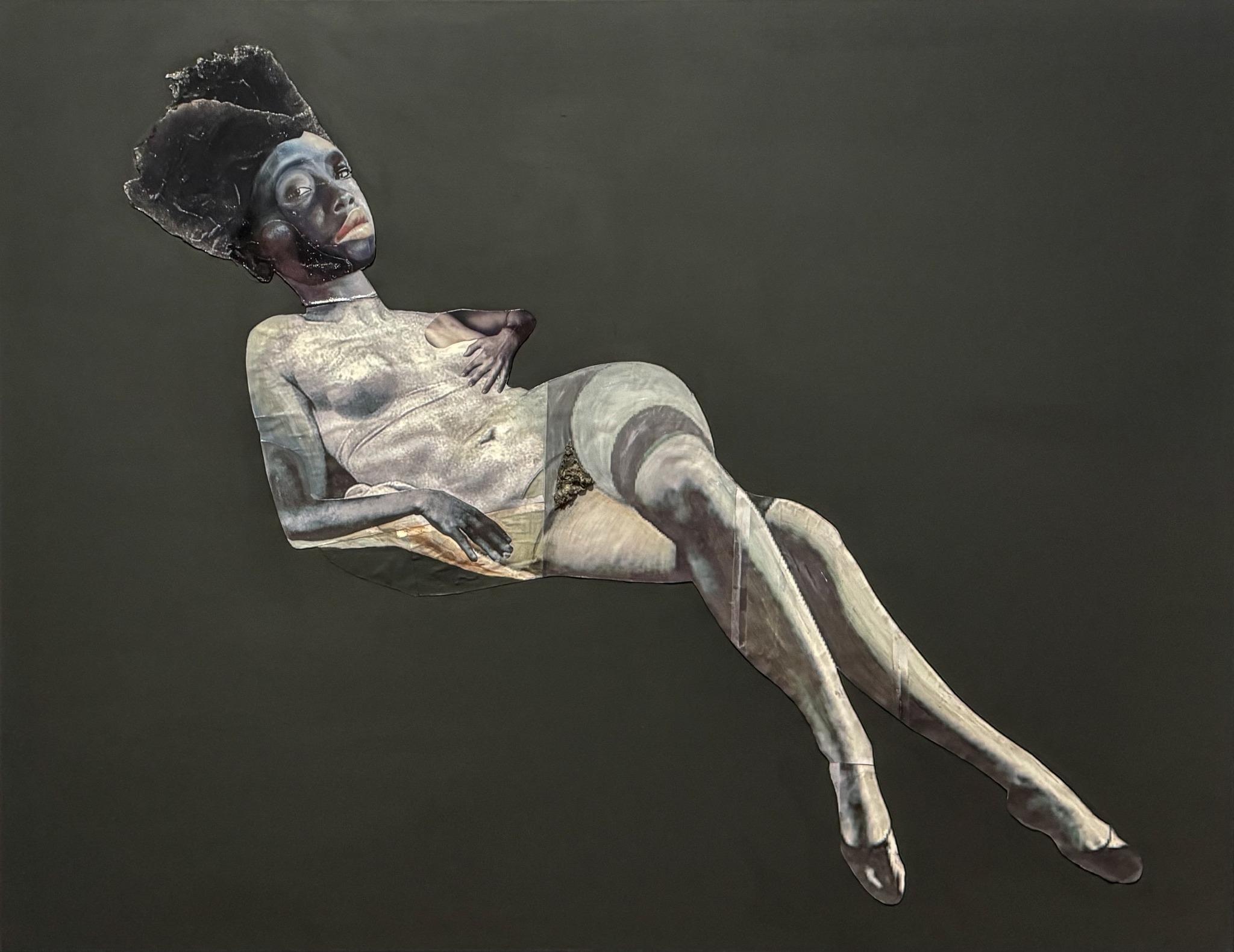 Und jüngst, rund 110 Jahre später entstanden, die Begegnung mit einer Collage ganz anderer Art, präsentiert in der Staatsgalerie Stuttgart unter der Sammlungstitel „This is tomorrow“ im Rahmen vom „Sommer der Künste. Villa Massimo zu Gast in Stuttgart.Anys Reimann, geb. 1965 in Melsungen, tätig in Düsseldorf, bildet aus verschiedenen Motiven 2022 eine „Odaliske“, 120 x 150 cm, eine Leihgabe der Sammlung Scharpff-Striebich. Die Gestalt kommt mir irgendwie halb vertraut vor. Und in der Tat: wieder treffe ich auf Michelangelo. Nun hat er Anteil an der Darstellung einer Vertreterin des People of Color. Sie wurde 2023 bereits in der Ausstellung „Menschheitsdämmerung, Kunst in Umbruchszeiten“ im Kunstmuseum Bonn gezeigt.