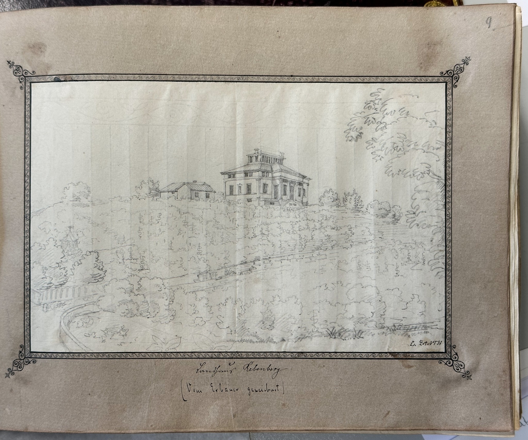 Schloss Fachsenfeld V – Stuttgart, Landhaus Rebenberg I, der Ort: Ludwig Zanth, Landhaus Rebenberg, u. r. sign., 12,3 x 18,7 cm, Stadtarchiv Aalen, Stiftung Schloss Fachsenfeld, N KOE 354, Album der Freiin Elisabeth von Koenig-Rebenberg, Bl. 9