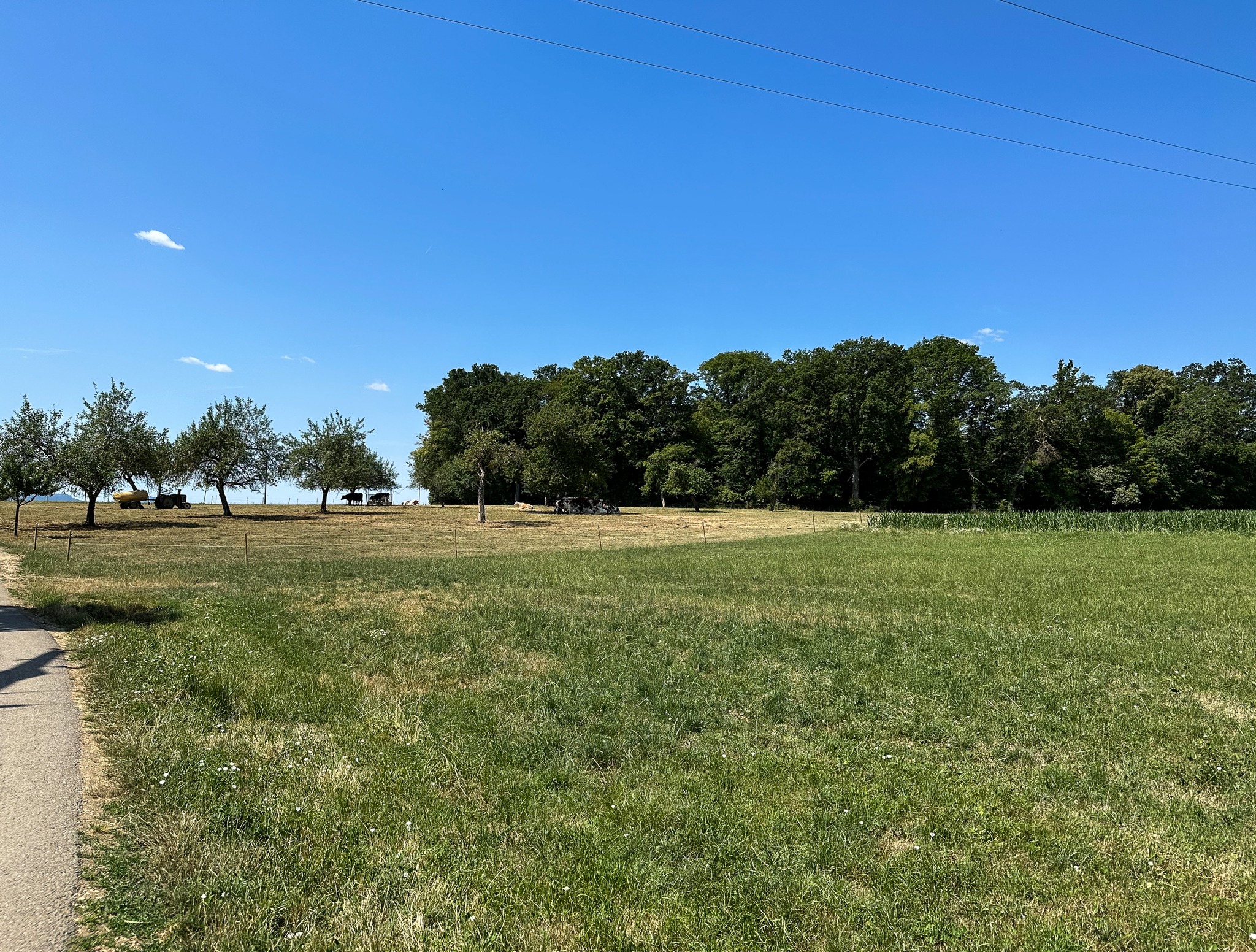Waldrand im Westen mit Weideflächen bei über 30 Grad Celsius: sämtliche Kühe und Rinder werden während der Hitzetage des Juli 2023 nur nachts ins Freie gelassen. Einige suchen hier Schatten unter Bäume wie Tiere in Afrika.